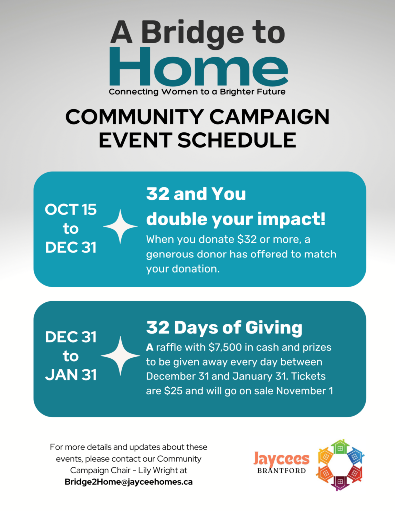 JC Homes has launched the Bridge to Home Campaign with a primary goal of raising $1.5 million in donations to support the $10.6 million construction cost. The campaign also aims to increase awareness about Brantford’s urgent affordable housing needs and the significant impact #32 Bridge Street will have on the community.